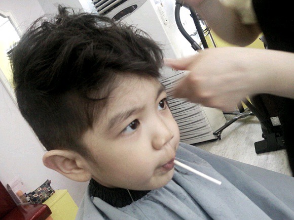 這小傢伙終於願意剪頭髮了