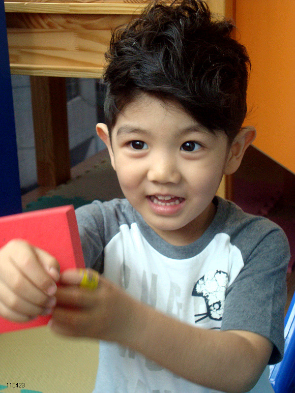 沒辦法回家後給佑根洗頭,媽媽重新給他弄了一下,